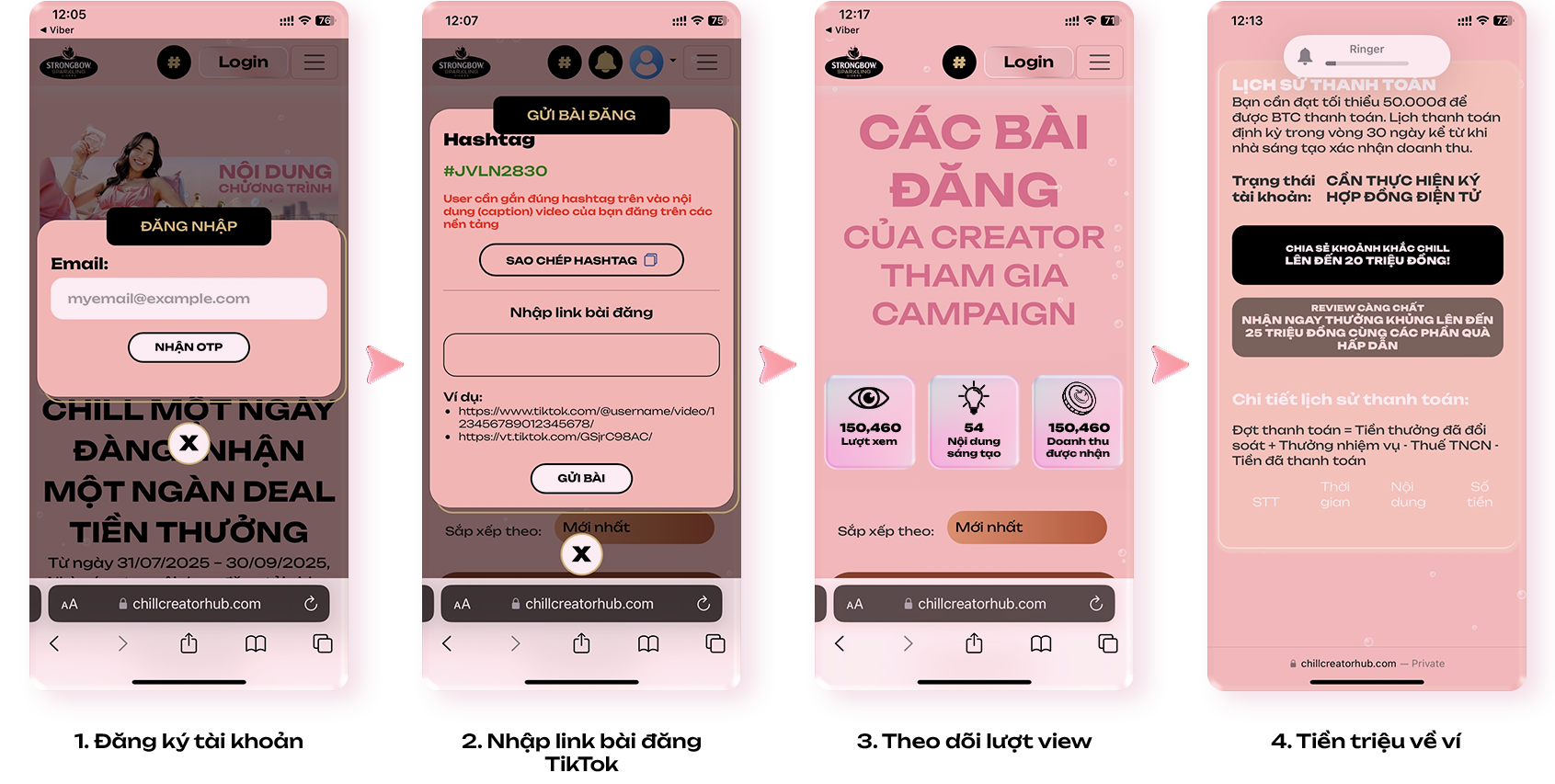 Đăng ký tài khoản, nhập link bài đăng (tiktok, facebook), theo dõi lượt view, tiền triệu về ví.